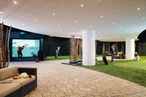 Das Kunstrasen Green im Indoor Golf Bereich